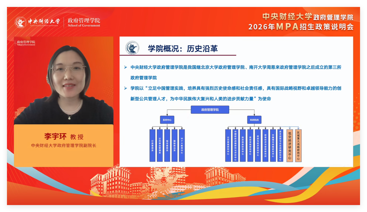 秉浩然正气,修上善若水以 “财经+治理” 培育公共管理英才立高远之志,践至善之行以经世济民之心筑中华复兴伟业2025年9月13日,2026年中央财经大学政府管理学院MPA招生政策说明会将于线上举办,全方位展现中财 MPA 项目的核心优势与独特魅力。诚邀各界有志于公共管理领域的精英人士一同探索MPA教育的无限可能,为学术深耕与职业突破开启崭新篇章!嘉宾阵容杨燕英教授:政府管理学院公共事业管理系主任,...[详细]